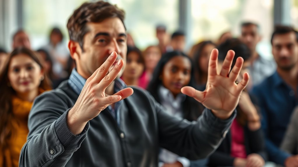 Virtual sign language interpreters break communication barriers by offering real-time, accessible translation through user-friendly platforms on your computer or mobile device. They promote inclusion in diverse settings like healthcare, education, and work, fostering a sense of belonging for deaf individuals. Advanced AI and high-quality video ensure clear, natural conversations while respecting cultural identities. To discover how these innovative tools are shaping society and creating inclusive environments, keep exploring the possibilities.