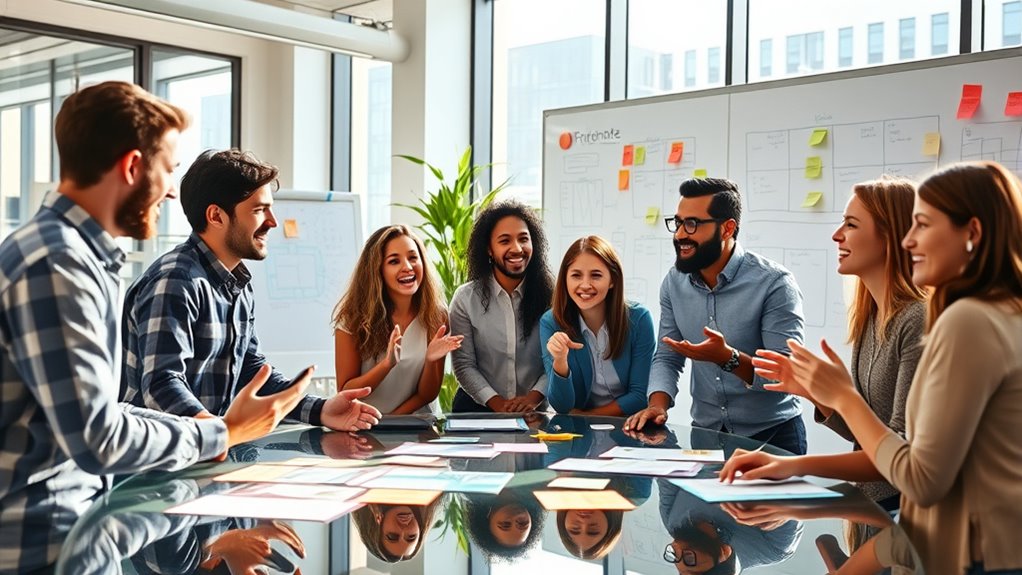 You can foster curiosity without losing productivity by encouraging innovative thinking and open communication. Set aside time for brainstorming and idea-sharing, making it clear that questions are welcomed. Lead by example, showing you’re open to new perspectives. Balance structured work with flexible exploration, so curiosity fuels progress rather than distraction. This approach boosts engagement, sparks creative solutions, and maintains focus on goals while nurturing an inquisitive team.