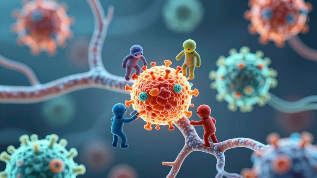 Ever wonder how your body knows when it’s fighting a germ? It all comes down to antigens, the unique markers on the surface of pathogens like bacteria and viruses. These antigens serve as identity tags, helping your immune system recognize specific germs through germ recognition. Because of antigen diversity, each germ has distinct antigens, which makes it possible for your immune system to distinguish one germ from another. When your immune cells encounter an antigen, they learn to identify it quickly in future infections. This recognition triggers your immune response, producing antibodies and activating cells to fight the invader. Without antigens, your immune system wouldn’t be able to target germs accurately, making it essential for your body’s defense system to respond effectively. Additionally, research on 16PF traits shows how understanding individual differences can influence immune responses, highlighting the complexity of immune system functioning.