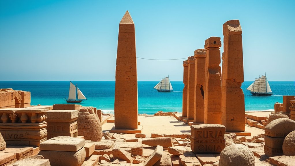 Ironically, you might think maritime trade only boosted wealth, but it also shaped Aksum’s culture through maritime technological innovations and vibrant cultural exchange programs. These exchanges introduced new ideas, religions, and art forms, transforming Aksum’s society. As you navigate these waters, you see how Aksum’s maritime connections didn’t just expand trade—they fostered a rich, diverse cultural identity that still influences the region today.