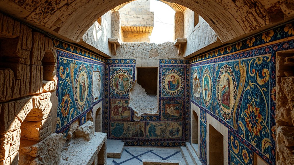 During recent excavations in Israel, spectacular Byzantine mosaics have been uncovered in ancient church sites, revealing intricate artworks filled with vibrant tesserae and symbolic imagery. These mosaics serve as “visual sermons” that depict biblical stories and spiritual themes, showcasing the high craftsmanship of Byzantine artisans. Using advanced archaeological techniques, researchers are uncovering layers of history, culture, and religious devotion. Continue exploring these remarkable findings to see how they illuminate the artistic and spiritual world of the Byzantine era.