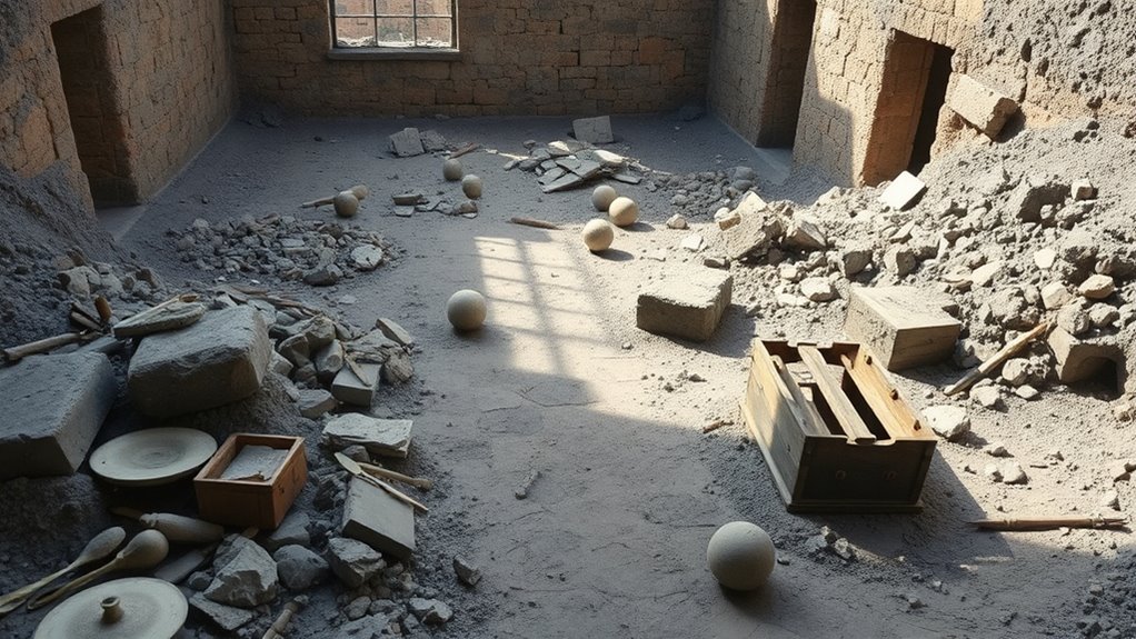 The excavation techniques employed are equally fascinating. You see teams working with precision tools, carefully removing volcanic ash and debris layer by layer. This meticulous process guarantees that no detail is overlooked, and it minimizes damage to the structures. Sometimes, archaeologists use robotic tools or drones to reach hard-to-access areas, demonstrating how technology enhances traditional methods. Each discovery is carefully documented and cataloged, creating a complete record of the site’s evolving landscape. This systematic approach allows scholars to piece together the city’s layout, social hierarchy, and cultural practices, giving you a clearer picture of what life was like before the catastrophe.