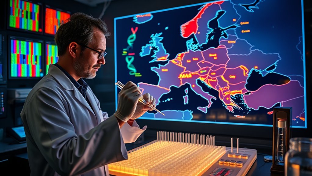 Genetic research shows that Viking origins are much more diverse and widespread across Europe than once thought. Instead of just raiders from Scandinavia, Vikings established long-term settlements, traded, and mixed with local populations. This creates a complex picture of migration and cultural exchange across the continent. Viking DNA leaves traces far beyond Nordic borders, shaping modern populations today. If you want to understand how broad their impact was, keep exploring how Vikings influenced Europe’s genetic landscape.