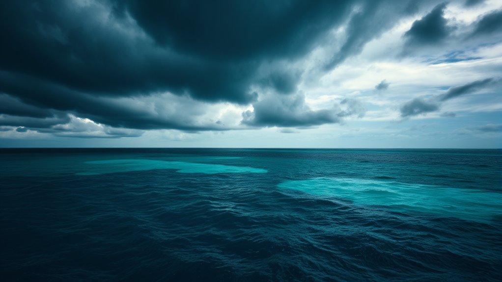 Weather whirls and wild wind patterns crucially spike the chances of trouble in the Bermuda Triangle. You’ll find weather anomalies like sudden storms, fierce wind systems, and unpredictable squalls that cause chaos on the water and in the skies. These storm systems can swiftly sink ships or destabilize aircraft, making it significantly important for travelers to monitor weather forecasts carefully. Weather’s wildness truly weaves a dangerous web within this mysterious maritime maze.
