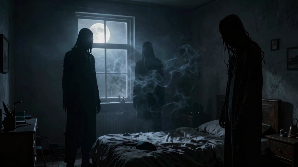 Cultural differences deeply influence how you interpret shadow figures. In some societies, shadow figures symbolize spirits or ancestors, while others see them as malevolent demons or omens. These cultural interpretations shape your perceptions, coloring your encounters with shadow figure symbolism. Your beliefs and background determine whether you view these shadows as warnings, whispers from the beyond, or mere mind-made illusions, making your cultural context essential in understanding your sleep paralysis experiences.