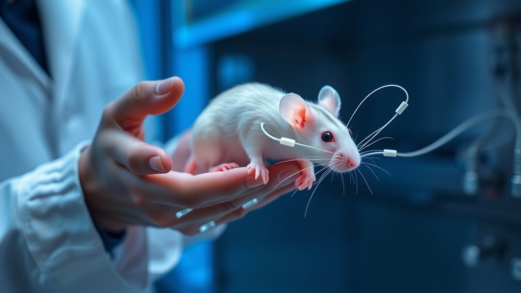 Researchers have successfully implanted false memories in mice, revealing how memories can be manipulated through precise neural techniques like optogenetics. This breakthrough shows that memories aren’t fixed but are reconstructed, opening new avenues for understanding how our brains store and recall information. While it raises ethical concerns about human memory manipulation, it also provides valuable insights into consciousness and identity. If you stay curious, you’ll discover more about how this discovery could impact future neuroscience research.