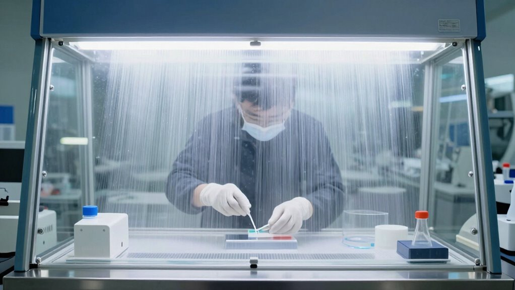Laminar flow hoods are critical for workplace safety, especially in settings where maintaining high standards of cleanliness isn’t just important but necessary. The controlled environment helps protect both the user and the samples from potential hazards. When operated correctly, these hoods minimize the risk of exposure to harmful biological agents or chemical vapors, creating a safer work environment. You’ll find them widely used in microbiology labs, pharmaceutical manufacturing, medical research, and electronics assembly—anywhere contamination control is paramount. By preventing the spread of airborne contaminants, laminar flow hoods guarantee that your workspace remains sterile, reducing the likelihood of cross-contamination that could jeopardize experiments or compromise products.