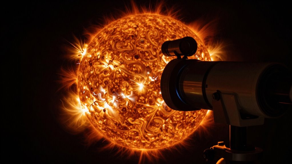 Solar telescopes allow us to observe the Sun in incredible detail, but doing so safely requires specialized equipment and techniques. Unlike regular telescopes, which simply gather visible light, solar telescopes are designed to handle the intense brightness and energy emitted by the Sun. They use advanced filters and optics to protect your eyes and instruments from damage. These filters reduce the Sun’s glare to safe levels while allowing detailed observation of solar features, such as sunspots, prominences, and solar flares. When it comes to solar flare monitoring, these specialized telescopes are indispensable. Solar flares are sudden, intense bursts of radiation caused by magnetic activity, and tracking them is crucial for understanding space weather that can impact satellites, communication systems, and power grids on Earth. By using dedicated solar telescopes equipped with high-resolution detectors, you can observe the development and progression of flares in real time, helping scientists better predict their effects.