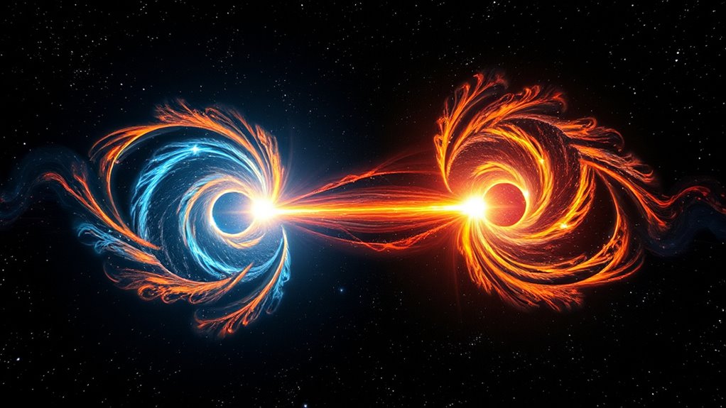 As you follow this cosmic event, it’s almost as if the universe itself planned this collision to unseal its deepest secrets. Witnessing two neutron stars merge isn’t just a coincidence; it’s a reminder of how interconnected everything is. You realize that even in the vast emptiness of space, moments like these happen to reveal the origins of heavy elements, shaping the very matter that makes up our world. Sometimes, the universe’s coincidences lead to the greatest discoveries.