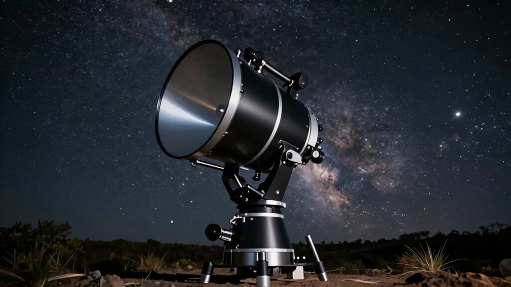 The overall optical quality of the telescope also impacts deep sky viewing. Optics with high-quality lenses or mirrors produce sharper images and reduce chromatic aberrations. Make sure the telescope has well-aligned optics and coatings that maximize light transmission. This will guarantee that your viewing sessions are productive and enjoyable. Additionally, understanding the importance of mount stability can greatly improve your observation experience by ensuring steady, clear views. High-quality optics and coatings complement the other components, creating a more seamless and rewarding stargazing experience.