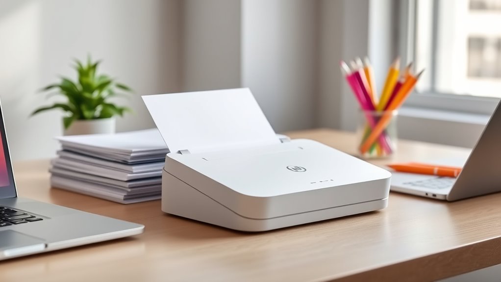 As I imagine my workspace transformed—papers seamlessly flowing into my device, clutter giving way to clarity—I realize a wireless scanner isn’t just a gadget. It’s a gateway to effortless organization, turning chaos into calm with every scan. With the right choice, you’ll breeze through tasks, like a gentle breeze stirring a still lake, leaving behind the clutter and embracing a smoother, more connected workflow. Let your scanner do the heavy lifting—your organized future awaits.