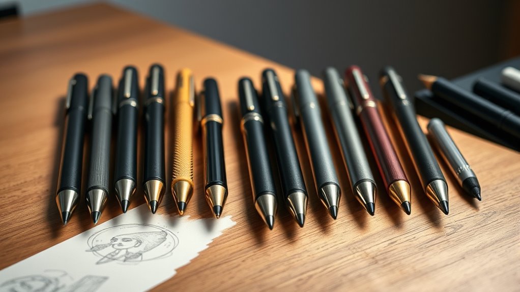 I’ve tried many mechanical pencils for drawing, and the top choices I swear by include options like the Nicpro 45PCS set for versatility, the Leda Art 2.0mm for smooth precision, and the Uniball Kuru Toga for consistent sharpness. Portability, lead sizes, and build quality matter a lot, so I look for sturdy, comfortable designs with plenty of refills. Want to discover more must-have pencils that will elevate your artwork? Keep going to find out!